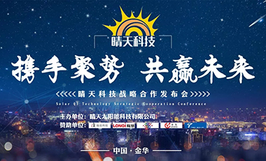 2019年8月14日,浙江晴天太陽能科技有限公司在偉達雷迪森廣場酒店召開了“攜手聚勢,共贏未來”——晴天科技戰略合作發布會。來自浙江、江蘇、上海、廣東各地的光伏行業資深...