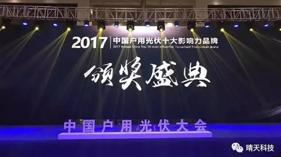 晴天科技榮獲“2017年度中國戶用光伏服務(wù)商十大影響力品牌”